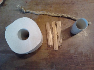 -Mehrere kleine Holzkeile, etwas länger als die TP-Rolle