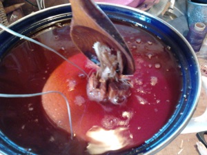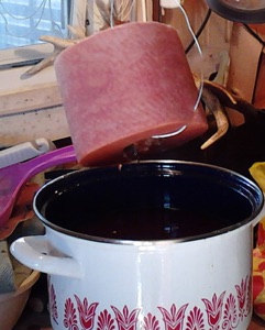 Die Rolle am Draht wieder aus dem Wachs herausnehmen und abtropfen lassen.